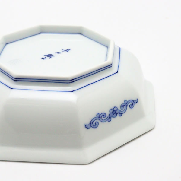 The title is Madori Botan Karakusa Hachikaku Mukozuke (間取牡丹唐草八角向付).