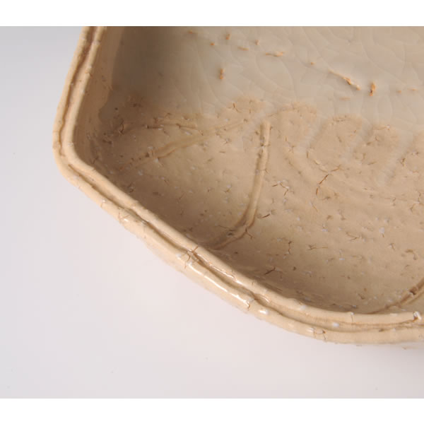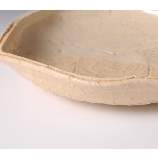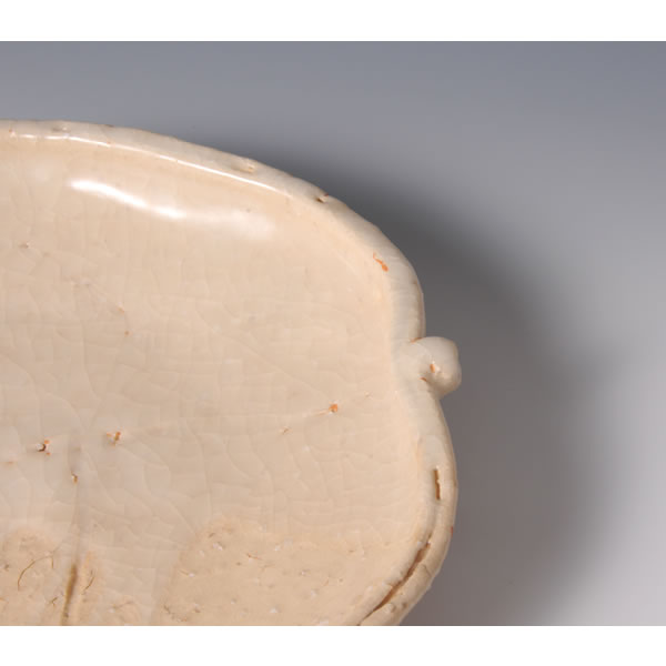It is leaf-shaped and milky white glaze is one of the characteristics.