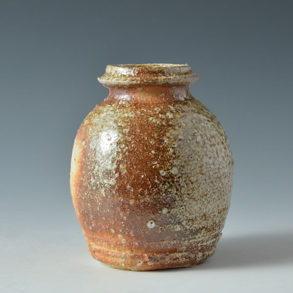 He's making new types of Shigaraki ware which fits the contemporary life. Bright and developing reddish-brown color is one of his good qualities.