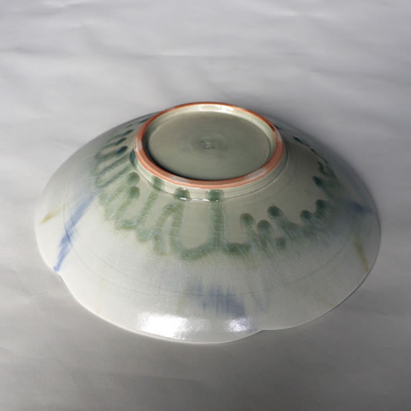 The title is Haiyu Sansai Bachi (灰釉三彩鉢).