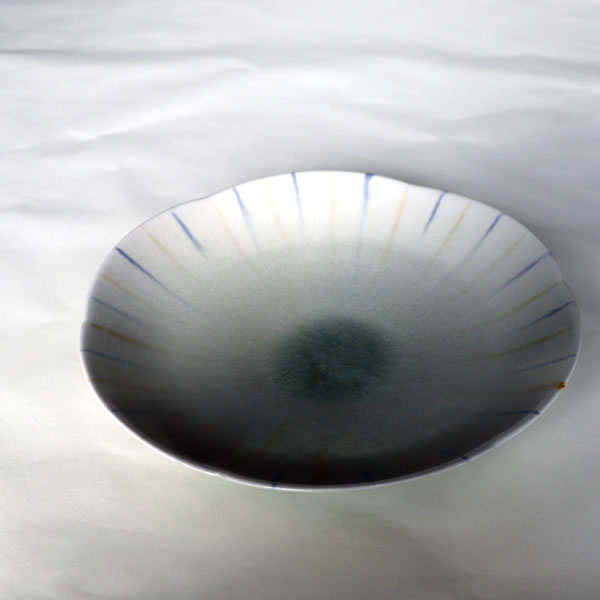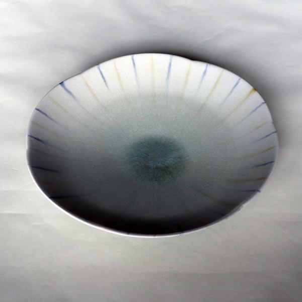 The title is Haiyu Sansai Bachi (灰釉三彩鉢).