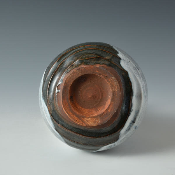 The gentle shape and soft glaze tone typical of Hagi ware leads to produce a heart-warming piece. He is devising the multi-dimensional structure to express an inner world.
