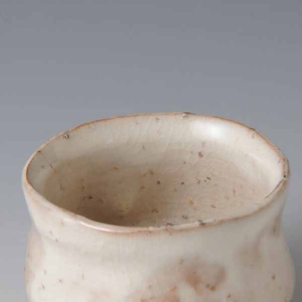 玉村信一 作 「萩ぐい呑」です。登り窯で焼成した、萩焼独特の色合いの風情あるぐい呑です。