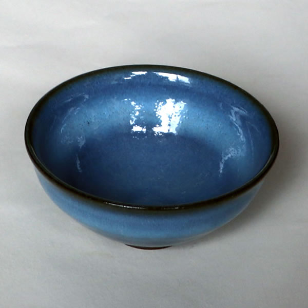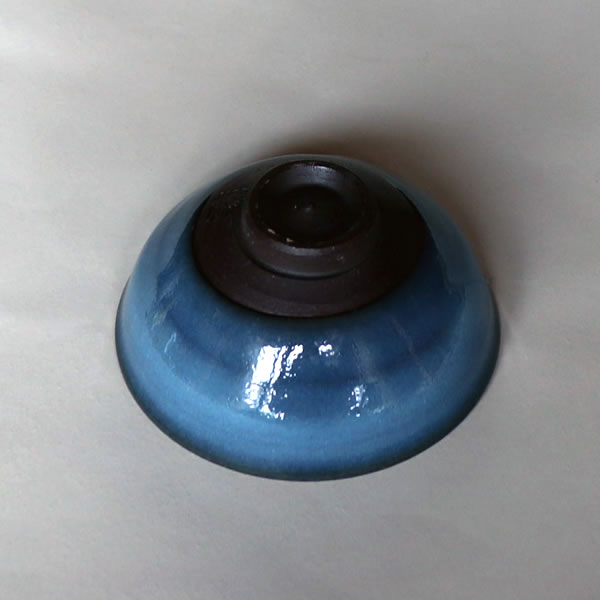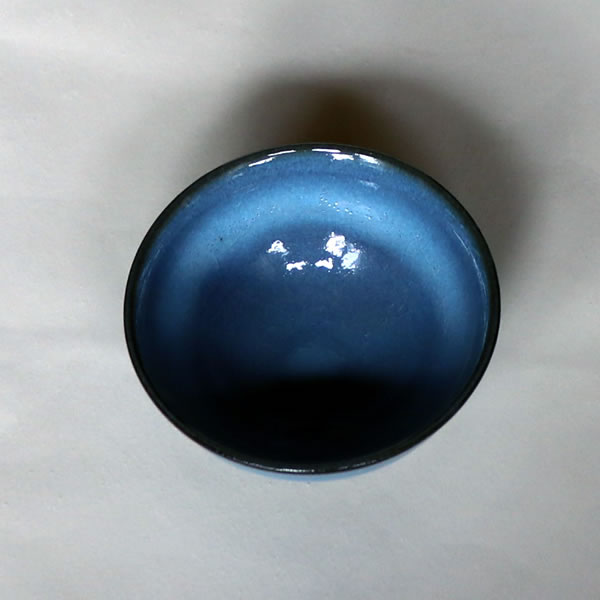 竹村繁男 作 「蒼天釉ぐい呑み」です。枇杷の灰を使って釉薬が掛かっています。青い色は、灰が持っている成分の色です。