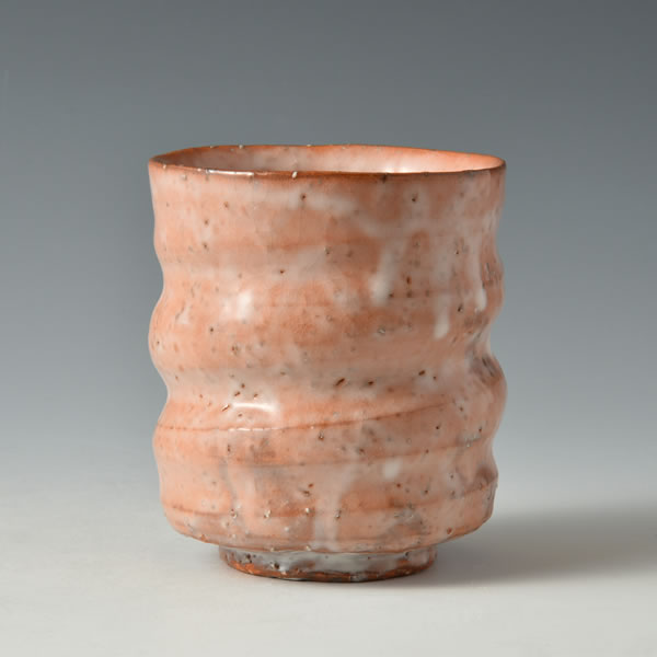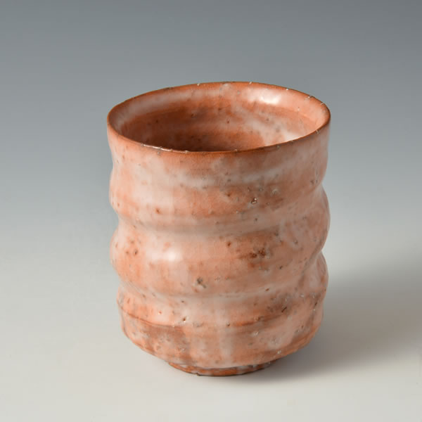 玉村登陽 作 「紅萩湯呑」です。登り窯で焼成しました。萩の土、大道土・見島土・金峯土(みたけつち)で当窯独自の配合で作った「登陽紅(とうようべに)」の湯呑です。