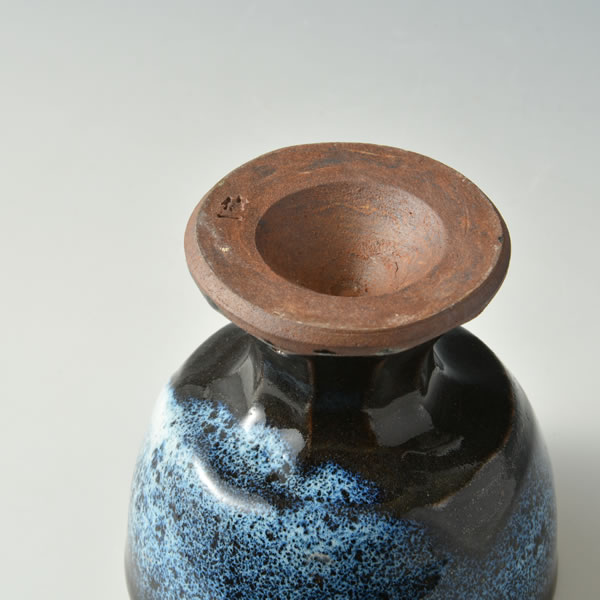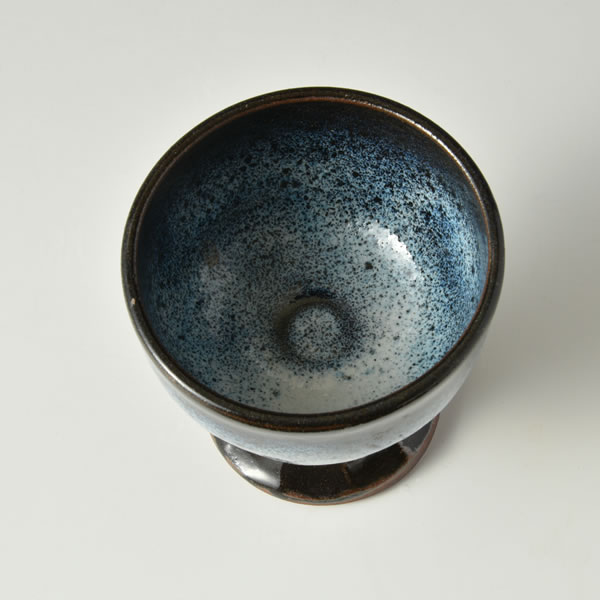 玉村信一 作 「藍彩馬上杯」です。登り窯で焼成しました。藍彩シリーズの一品です。馬上杯とは、もとは武将が騎上で酒を呑むための杯です。