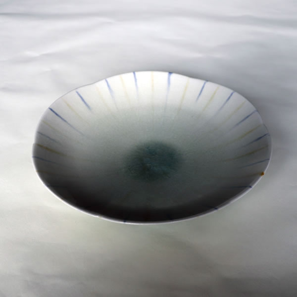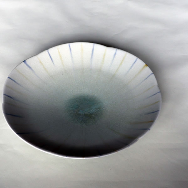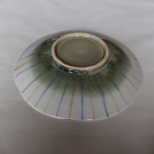 The title is Haiyu Sansai Bachi (灰釉三彩鉢).