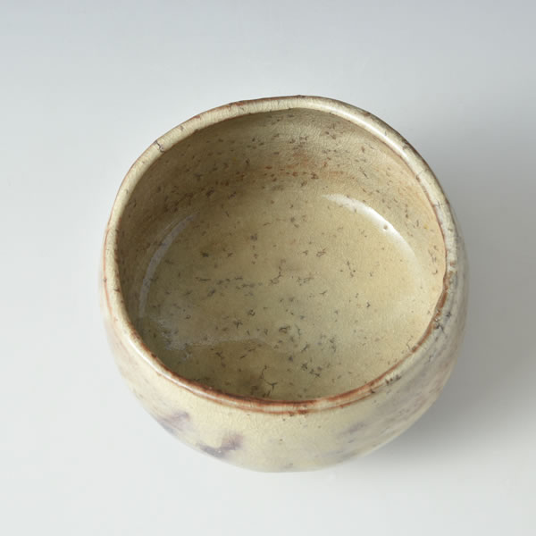 The gentle shape and soft glaze tone typical of Hagi ware leads to produce a heart-warming piece. He is devising the multi-dimensional structure to express an inner world.