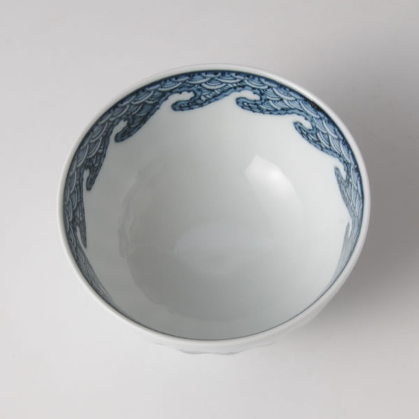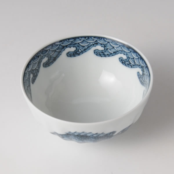 約四百年の歴史を持つ平戸松山窯で、現代の三川内焼を表現します。青一色で、唐子絵、唐草文様や瑞々しい草花を描きます。