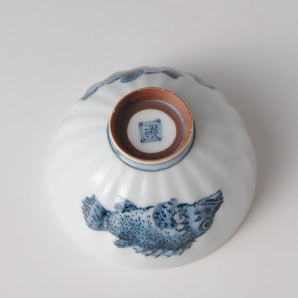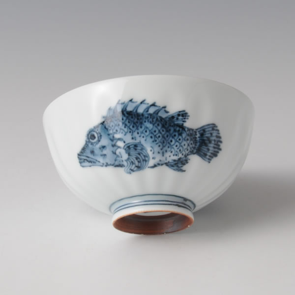 平戸松山窯の「魚紋飯碗」です。濃い目の筆使いで描きます。愛くるしい魚の目が印象的な紋様です。当作品は販売済みですが、お求めの方は窯に確認しますので、お問合せ下さい。