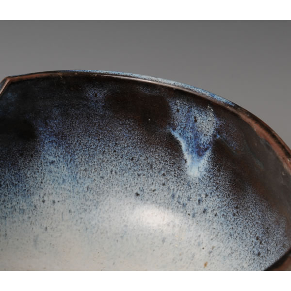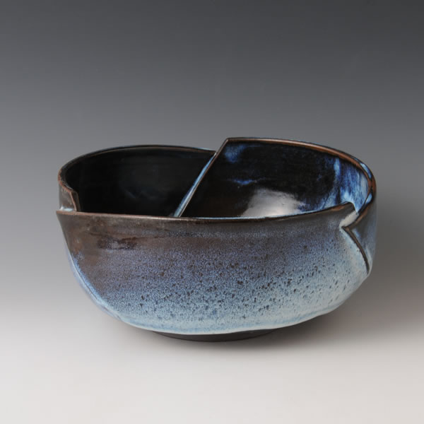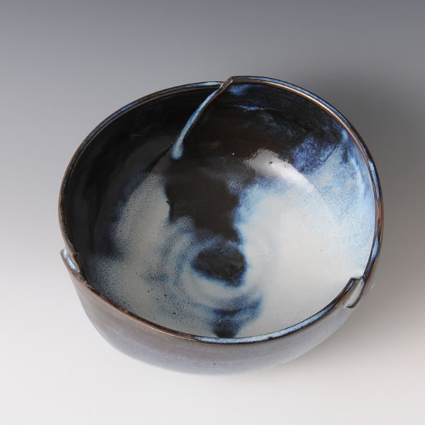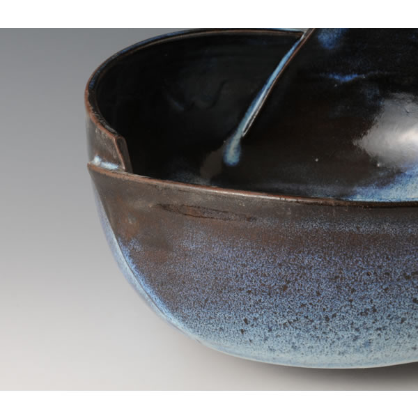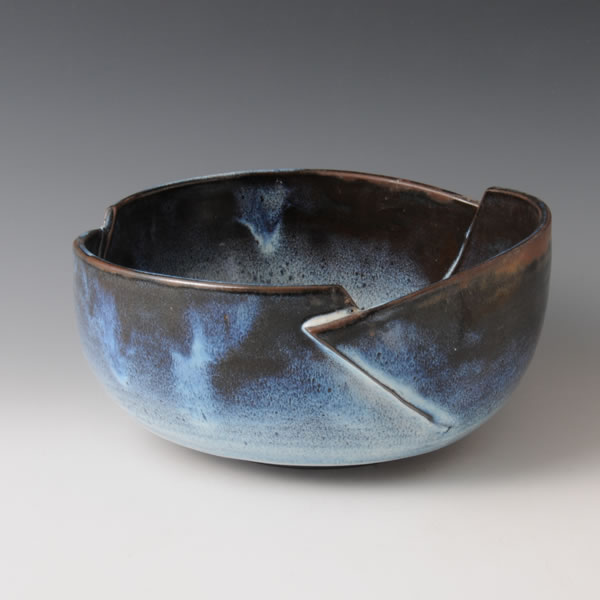 玉村信一 作 「藁釉深鉢」です。縁に切れ目を入れ、それを綴じ合わせた「綴目」の作品で、藁釉の釉調がきれいな一品です。