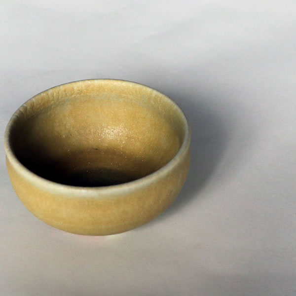 竹村繁男 作 「陽向釉ぐい呑」です。日葵の幹や花を焼いて灰を釉薬にしたものを掛けています。