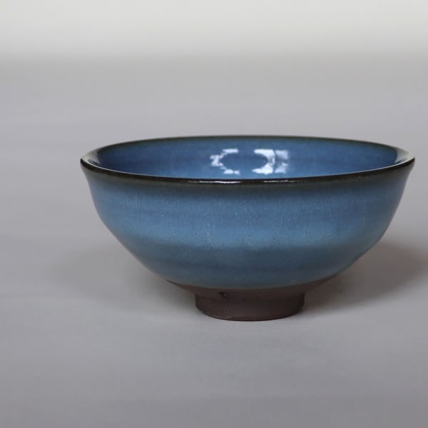竹村繁男 作 「蒼天釉ぐい呑み」です。枇杷の灰を使って釉薬が掛かっています。青い色は、灰が持っている成分の色です。