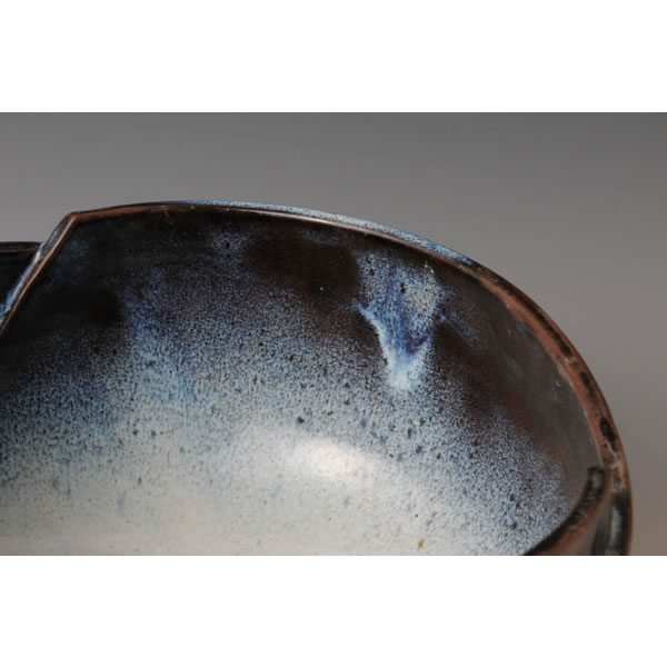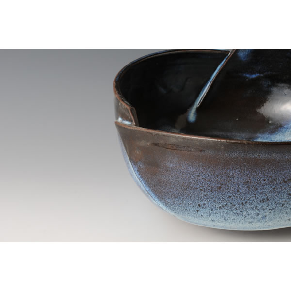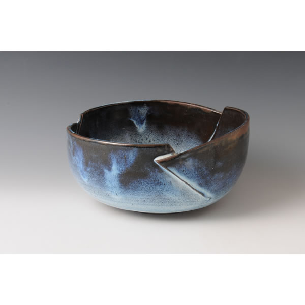 玉村信一 作 「藁釉深鉢」です。縁に切れ目を入れ、それを綴じ合わせた「綴目」の作品で、藁釉の釉調がきれいな一品です。